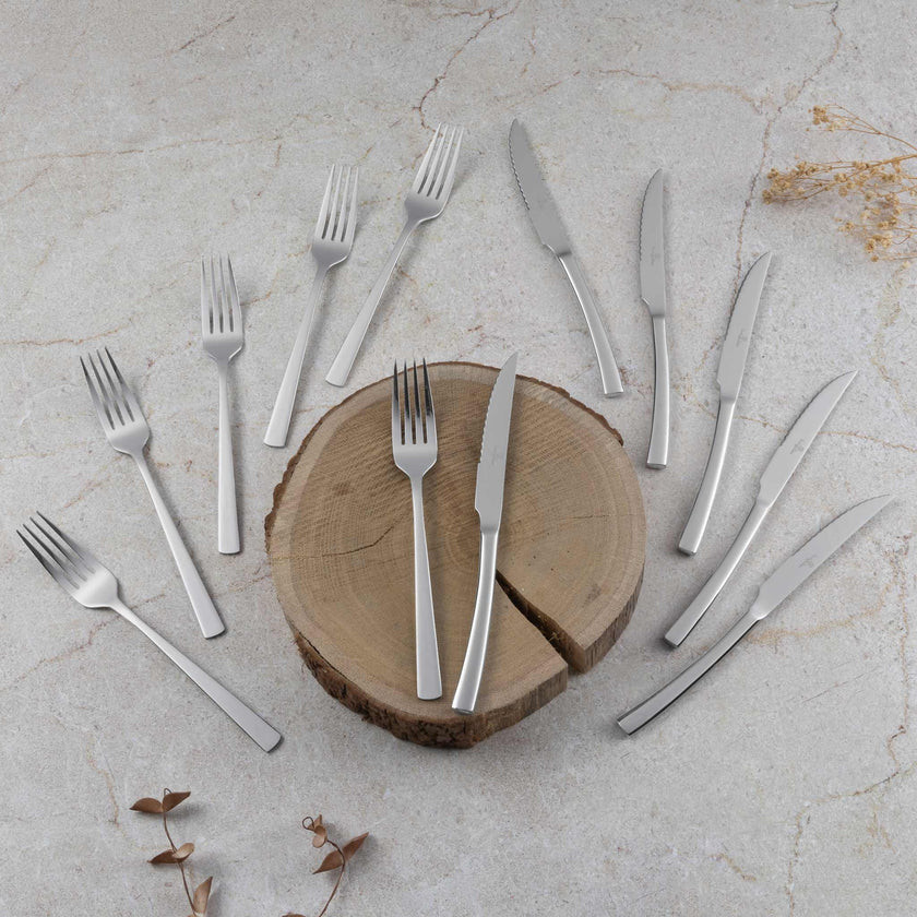 A 12 részes evőeszköz készlet az Antracit Collection része, amely a modern konyhák elengedhetetlen kiegészítője. Ez a kollekció nemcsak funkcionális, hanem esztétikailag is lenyűgöző, így az evőeszközök nem csak a fiókban rejtőznek, hanem büszkén ki is állíthatók. A készlet rozsdamentes acélból készült, tükör fényes bevonattal, amely nemcsak tartósságot, hanem elegáns megjelenést is biztosít. Ez a minőségi anyag garantálja, hogy az evőeszközök hosszú élettartamúak és könnyen tisztíthatók legyenek. Az Antracit Collection evőeszközei különleges megjelenésükkel és elegáns kivitelezésükkel tűnnek ki. A tükör fényű bevonat nemcsak esztétikai élményt nyújt, hanem a mindennapi használat során is megőrzi fényét és ragyogását. A készlet egyedi csomagolásban érkezik, amely nemcsak a tárolást könnyíti meg, hanem ajándékként is tökéletes választás. Az Antracit Collection 12 részes evőeszköz készlete nemcsak a konyhában, hanem az étkezőasztalon is megállja a helyét. Élvezd a kiváló minőségű rozsdamentes acél nyújtotta előnyöket, és varázsold különlegessé az étkezéseket ezzel a lenyűgöző készlettel.