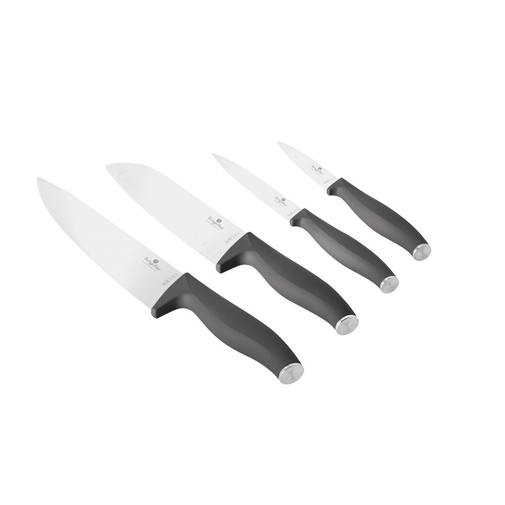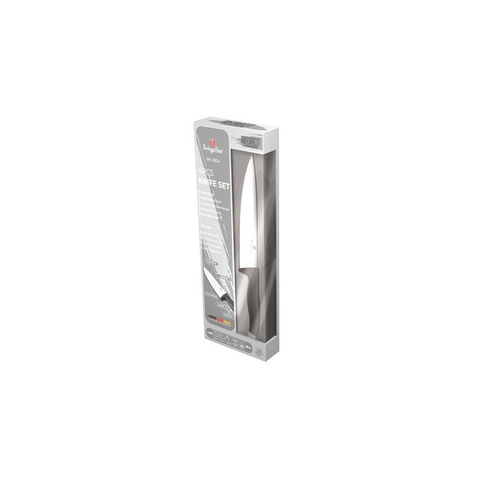 Az Antracit Collection 4 részes késkészlet egy igazi kincs a konyhában. A 3cr13 rozsdamentes acélból készült kések tartósak és ellenállnak a rozsdának, így hosszú élettartamot biztosítanak. A szett tartalmaz egy 20 cm-es séf kést, egy 17,5 cm-es santoku kést, egy 12,5 cm-es általános kést és egy 9 cm-es hámozó kést, így minden feladathoz megtalálod a megfelelő kést. A matt antracit színű kések nem csak praktikusak, de stílusosak is, így a konyhád díszei lehetnek.