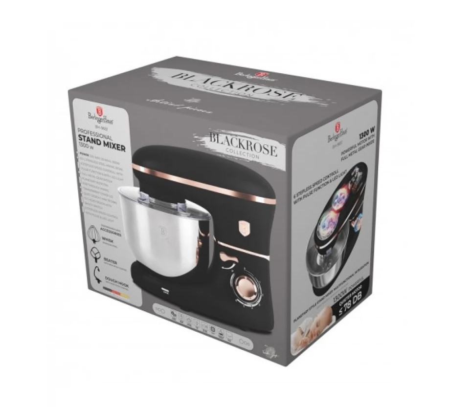 A Black Rose Collection részeként a konyhai robotgép nemcsak egy erőteljes konyhai eszköz, hanem egy stílusos kiegészítő is, amely bármelyik konyhában megállja a helyét. A rozsdamentes acél és műanyag kombinációjával készült robotgép nemcsak tartós, hanem könnyen tisztítható is, így időt takarít meg a mindennapi konyhai teendők során. A készlet tartalmaz egy 5 literes rozsdamentes acél keverőtálat, valamint három különböző kart tapadásmentes tésztadagasztó és keverőkampót, valamint egy habverőt, így minden konyhai feladatra felkészült. Az 1500 W-os motorral és a 6 fokozatmentes sebességgel, impulzus funkcióval ellátott robotgép minden kihívásnak megfelel. A LED fény jelzi a teljesítményt, így mindig tudja, hogy a gép készen áll a használatra. A csendes működés pedig biztosítja, hogy a konyhai tevékenységek ne zavarják a ház nyugalmát. A robotgép könnyen nyitható és zárható, ami megkönnyíti a használatot. A rozsdamentes acél tál és a tapadásmentes kiegészítők egyszerűen tisztíthatók, így több időt tölthet a főzéssel és kevesebbet a takarítással. A matt krém színű, elegáns kialakítású robotgép nemcsak funkcionális, hanem esztétikus is. A Black Rose Collection minden konyhai eszköze egységes dizájnnal rendelkezik, így bátran kihelyezheted őket a konyhapultra, nem kell elrejteni őket a fiókok mélyén.