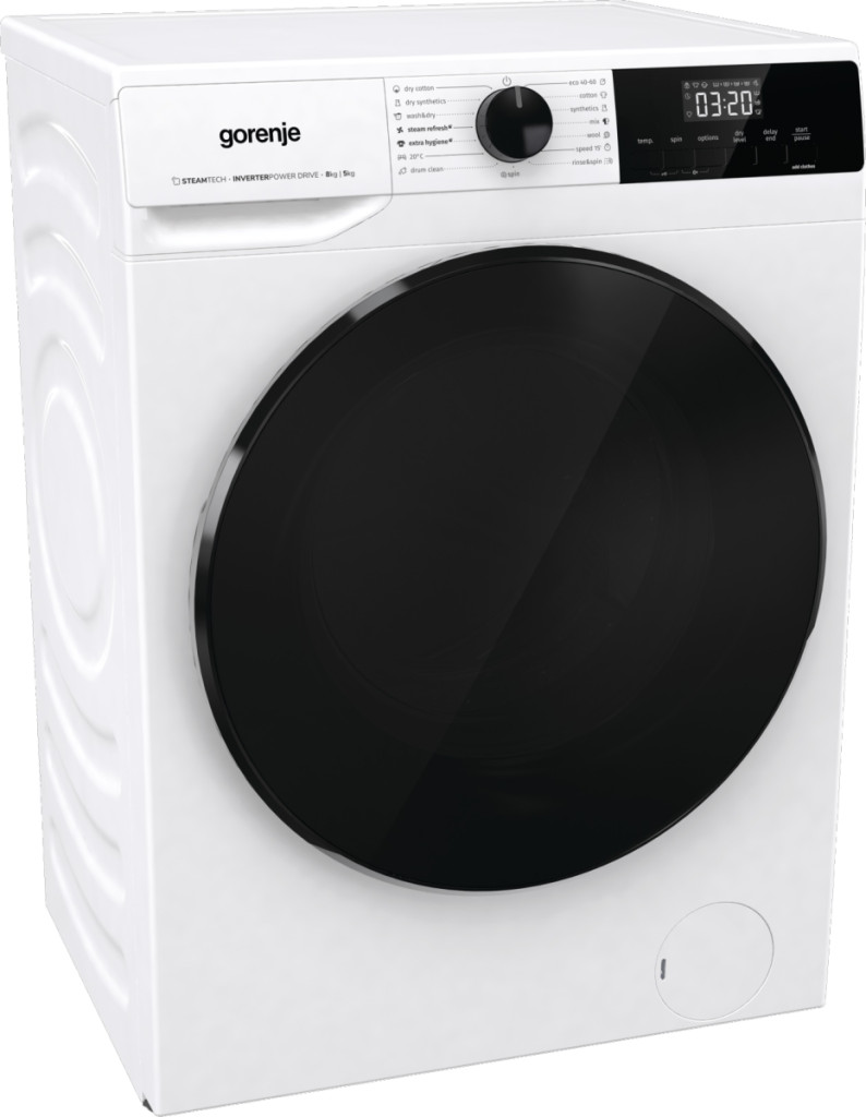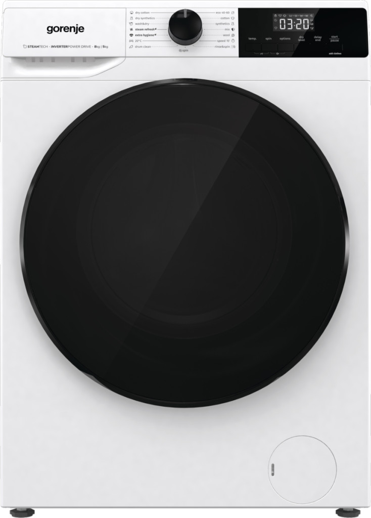 Töltetkapacitás mosás: 8 kg. Töltetkapacitás szárítás: 5 kg. Centrifuga: 1400 ford./perc. Energiaosztály: mosógép: A. szárító: D. Energiafogyasztás mosás: 47 kWh/100 ciklus. szárítás: 266 kWh/100 ciklus. Vízfogyasztás: 42 liter/ciklus. Kondenzációs. Programok száma: 15 . Vegyes-Mix. Gyors. Gyapjú. Szintetikus és színes ruhanemű. Pamut. AllergyCare. Eco 20 °C. 15 perces gyorsmosás. Öblítés. Centrifugálás. Dobtisztító. Szárító programok: Auto dry. SteamRefresh gőzöléses frissítés. Pamut normál szárítási szint. Synthetic-mix storage. AllergyCare. Szín: Fehér, fekete.