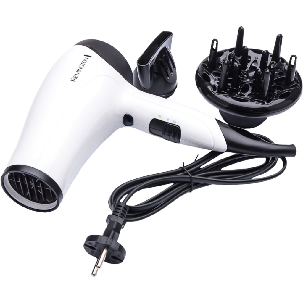 A Remington D3015 egy 2000 W teljesítményű hajszárító, amelynek köszönhetően a hajad egészséges és lenyűgöző lesz. A készülék 3 hőmérséklet beállítással és 2 légáramlási teljesítmény beállítással van felszerelve, így a készülék paramétereit az igényeidhez igazíthatod. A hajszárító számos hasznos funkcióval rendelkezik, mint például hideg levegő fúvás, ionizációs funkció, Eco funkció, amely csökkenti az energiafogyasztást, és kényelmes akasztófogantyú. A készlet tartalmaz egy koncentrátort és egy diffúzort a hajszárítóval együtt.