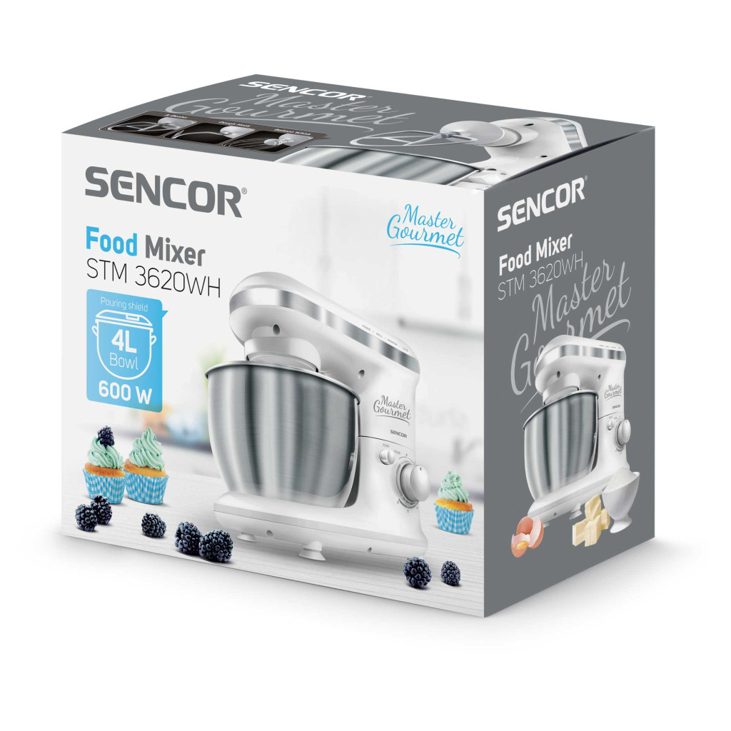A Sencor STM 3620WH konyhai robotgép tökéletes társ a konyhádnak. A robotgép nagy 4 literes rozsdamentes acél táljában, nagyobb mennyiségű tészták, krémek készítésére is alkalmas. A csomag tartalmát is képező 4 különböző cserélhető fejeknek köszönhetően lehetővé teszik a tökéletesen felvert tejszínhab vagy könnyű tojáshab elkészítését, de a dagasztás, illetve könnyű tészták elkészítése sem okoz neki gondot. A bolygóműves rendszer lehetővé teszi az alapanyagok maradéktalan feldolgozását és ezáltal minden összetevő alapos összekeverését. A bolygórendszerű működés lényege, hogy a keverőszár a saját tengelye és a hajtómű tengelye körül is forog. A billenő kar kényelmesebbé teszi a munkavégzést és könnyebbé a tartozékok cseréjét a bajonett-rendszerű tartozéknak köszönhetően. A Sencor a robotgépek gyártása során nagy hangsúlyt fektet a biztonságos használatra. A Sencor egyedülálló bolygóműves rendszere lehetővé teszi az alapanyagok maradéktalan feldolgozását és ezáltal minden összetevő alapos összekeverését. A bolygórendszerű működés lényege, hogy a keverőszár a saját tengelye és a hajtómű tengelye körül is forog. A Sencor három biztonsági funkcióval szerelte fel a készüléket, amelyek garantálják a biztonságos kezelést még a legnagyobb teljesítmény mellett is. Biztonsági reteszek, csúszásgátló talpak és túlmelegedés elleni védelem.