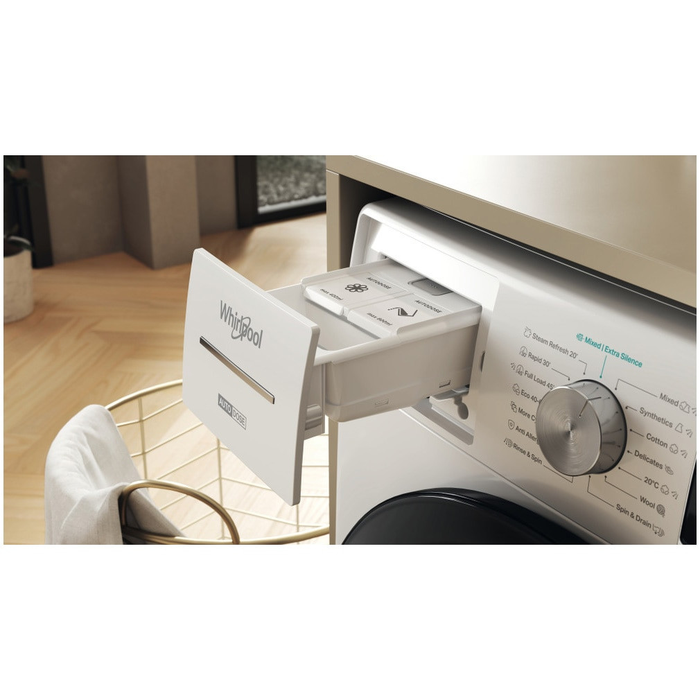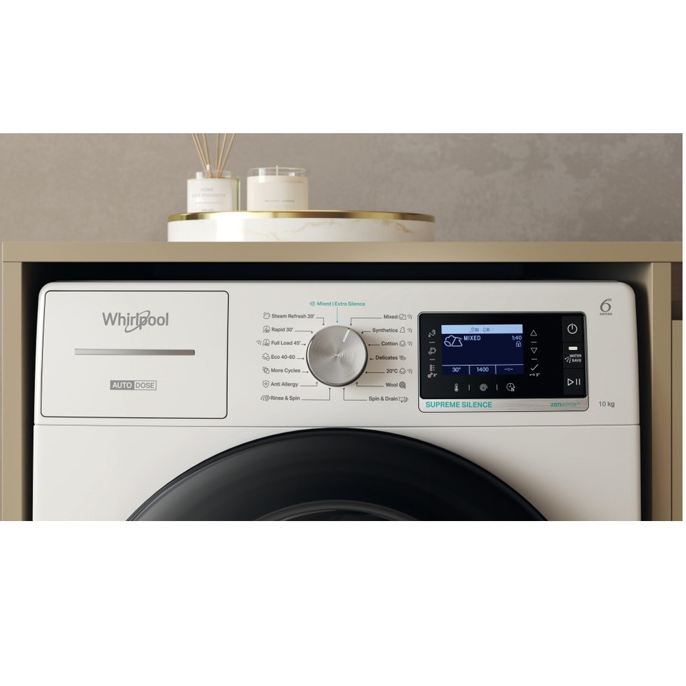 Töltetkapacitás: 10 kg. Szabadonálló. Energiahatékonysági osztály: A. Vízfogyasztás: 43 liter. Energiafogyasztás: 36 kWh/100 mosás. Programok száma:15. Gyapjú. Pamut. Műszálas. Vékony. Mix. Gyors30. Eco 40-60. 20°C. Steam. Refresh 20'. Teljes töltet 45'. Anti allergy. Öblítés és centrifugálás. Centrifuga és leeresztés. Vegyes/Extra. Csendes. Tobb ciklus. Centrifuga: 1400 fordulat/perc. Technológia: Dob megvilágítás. Hátralévő idő kijelző. Késleltetett indítás. Gyermekzár. 6. érzék funkció. FreshCare+ Zen. Szín: Fehér.