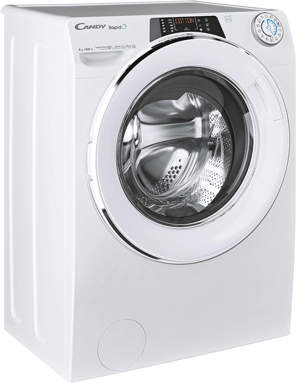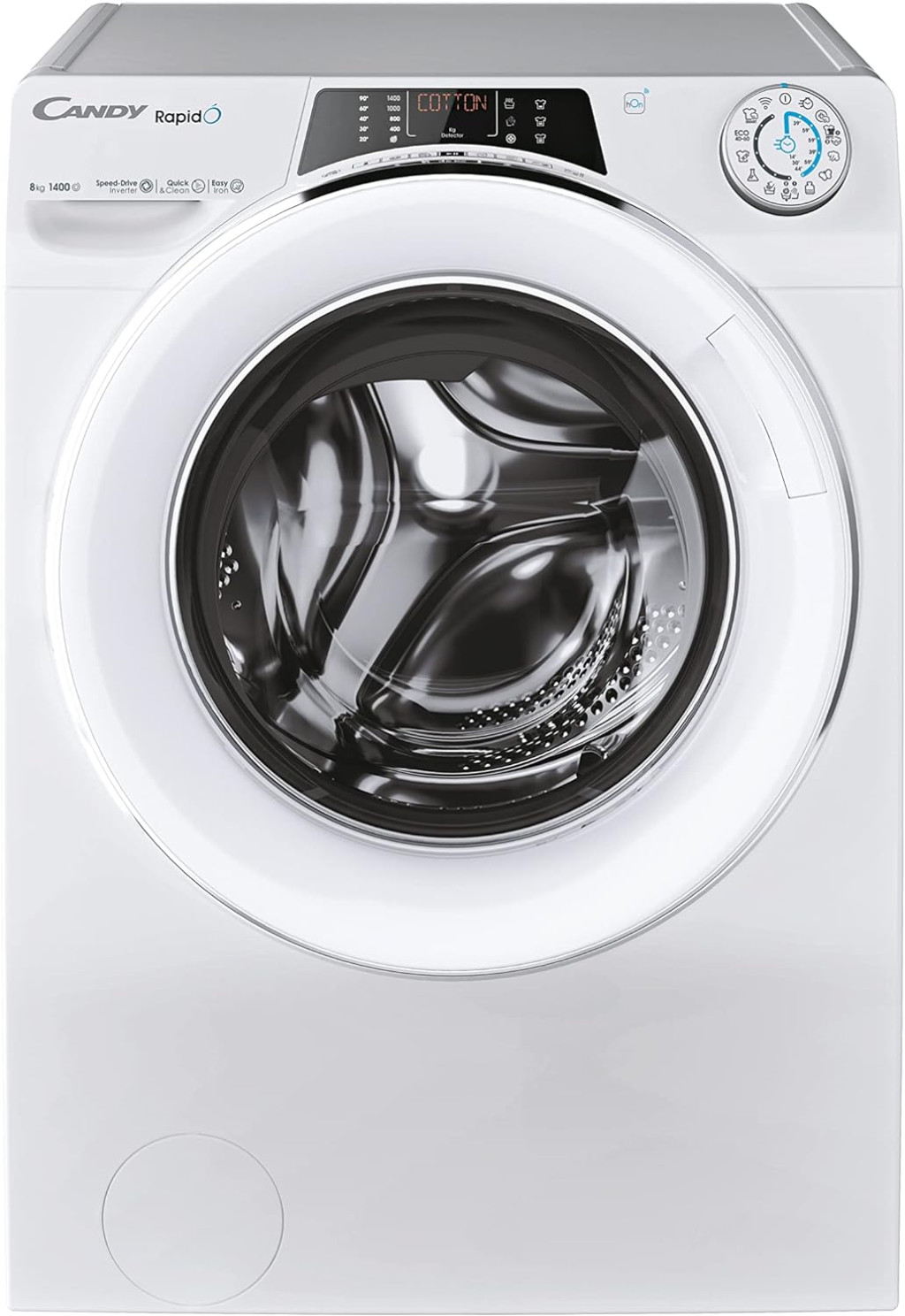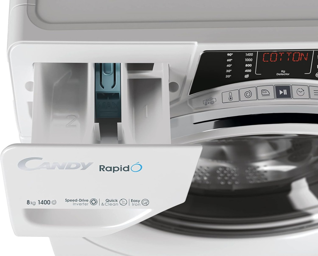 A Candy RapidÓ egy olyan mosógép, amely segít, hogy legyen időd magadra. A legteljesebb gyorsprogram készlet közül választhatsz 9 gyorsprogram. A RapidÓ segít abban, hogy minden nap időt takaríts meg, és annak szentelheted magad, amit a legjobban szeretsz, ezzel is javítva életed minőségét. A ruhanemű mennyiségének, típusának és színének megfelelő mosóprogramot okostelefonod segítségével megtudhatod. A Candy RapidÓ exkluzív Snap & Wash funkciójának köszönhetően csak le kell fényképeznie a ruhaneműt, hogy megkapd a legmegfelelőbb gyorsprogram javaslatát. Ezenkívül a rendszer automatikusan beállítja a megfelelő hőmérsékletet és forgási sebességet. Válaszd ki kedvenc programodat a 9 gyors és hatékony program közül kevesebb mint 1 óra alatt 14', 29', 30', 39', 44', 59' a legjobb eredménnyel, köszönhetően a Speed ​​​​Drive motornak, amely növeli akár 50%-os tisztítóhatás a hagyományos motorhoz képest. A Speed-Drive Inverter egy innovatív és tartós kefe nélküli motor. Akár 50%-kal is képes növelni a tisztító teljesítményt a szabványos univerzális motorhoz képest, miközben csökkenti az energiafogyasztást és a zavaró rezgéseket. A Quick&Clean technológia egyetlen koncentrált oldatban keveri össze a vizet a mosószerrel. A készülék nagynyomású sugárral permetezi ki a dobban lévő oldatot, amely mélyen behatol a szövetek rostjaiba. Ez az új technológia növeli a mosószer mosási teljesítményét, így lehetővé teszi a normál mosási hőmérséklet csökkentését 40°-tól 20°-ig mosási eredményt, 60°-tól 40°-ig terjedő mosási eredményeket érhet el, a nagyon szennyezett ruháknál pedig 60°-os mélytisztítást. Válaszd a gyors "Napi higiénia" programot a ruhák tökéletes fertőtlenítéséhez és mélytisztításához. Ez a program mindössze 59 percig tart, de 20 percig mos 60°C-on, így fertőtleníti a ruhaneműt azáltal, hogy eltávolítja a kórokozókat, baktériumokat és minden vírust, amely hatással lehet a Te és családod egészségére.