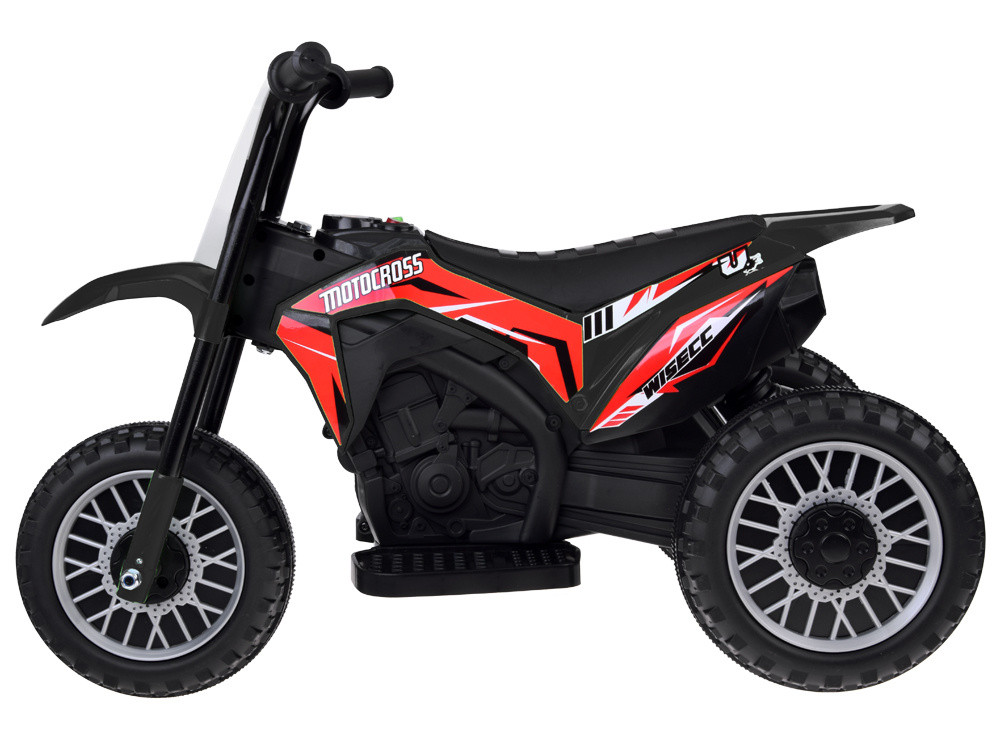 Motor: 1 x 6V. Akkumulátor: 6V 4,5Ah. Sebességváltó: 1 előre, 1 hátra. Sebesség: 2-3 km/h. Max.terhelés: 20 kg. Töltési idő: 8 óra. Integrált gázpedál a láb elvételével fékez a motor. Kerekek: Műanyag gumi futószalaggal. Szín: Fekete, piros.