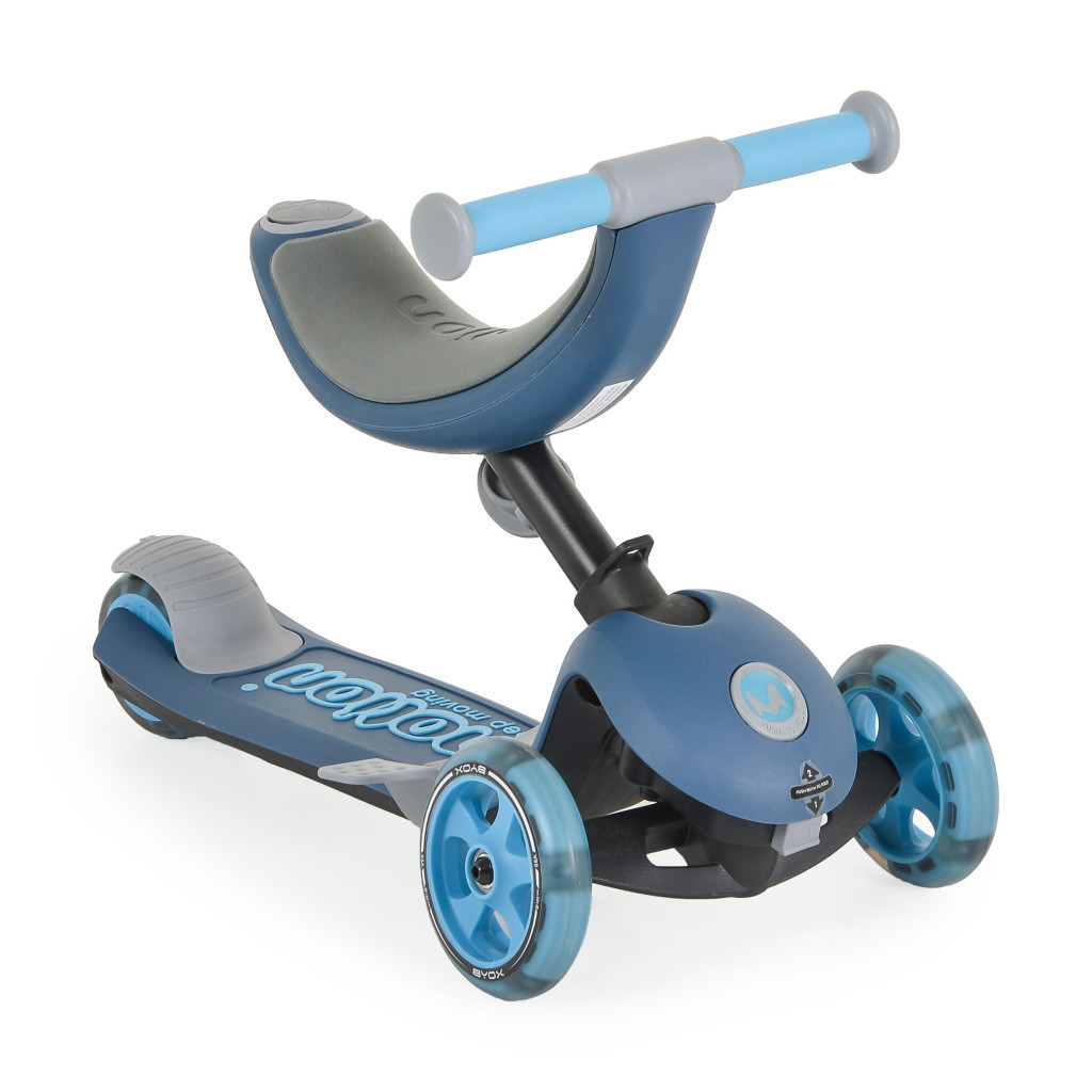 A Byox Motion 4 az 1-ben roller tökéletes megoldás gyermeke növekvő igényeinek kielégítésére, 4 különböző használati módot kínál a különböző életkoroknak és fejlődési szakaszoknak megfelelően. Összecsukható és többfunkciós kialakításával ez a roller maximális kényelmet és hosszú távú használatot biztosít. Az 1. üzemmódot 12 hónaposnál idősebb, legfeljebb 20 kg súlyú gyermekek számára tervezték. Ebben az üzemmódban a kocsit szülői felügyelet mellett használják, a gyermek puha szövetborítású ülésen ül, és egy levehető láblépcső biztosítja a kényelmet a séták során. A 2. üzemmódban a szülői vezérlés és a lábtartó eltávolítható, így a gyermek az ülés megtartásával önállóan élvezheti az utazást. A 3. mód a triciklit klasszikus üléssel ellátott modellé alakítja át, és egy 57 cm-es fix magasságú kormányra cseréli. Ebben az üzemmódban a tricikli 3 év feletti és legfeljebb 50 kg súlyú gyermekek számára alkalmas. A 4. üzemmód a szülői kezelőszervet TPR markolattal ellátott kormányra változtatja, amely 65 és 84 cm között állítható magasságban, a gyerme magasságához igazodva. Ez az üzemmód szintén alkalmas 3 év feletti, legfeljebb 50 kg súlyú gyermekek számára. A roller PU kerekekkel és ABEC-7 csapágyakkal van felszerelve a sima és stabil mozgás érdekében. Az első kerekek 120×35 mm-esek, és csak előre és hátrafelé történő mozgásra rögzíthetők, emelkedőn való elfordulásra nincs lehetőség, a hátsó kerék pedig 100×50 mm-es, széles lábfékkel a nagyobb biztonság érdekében.