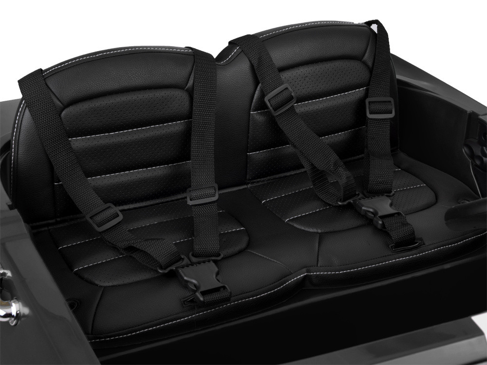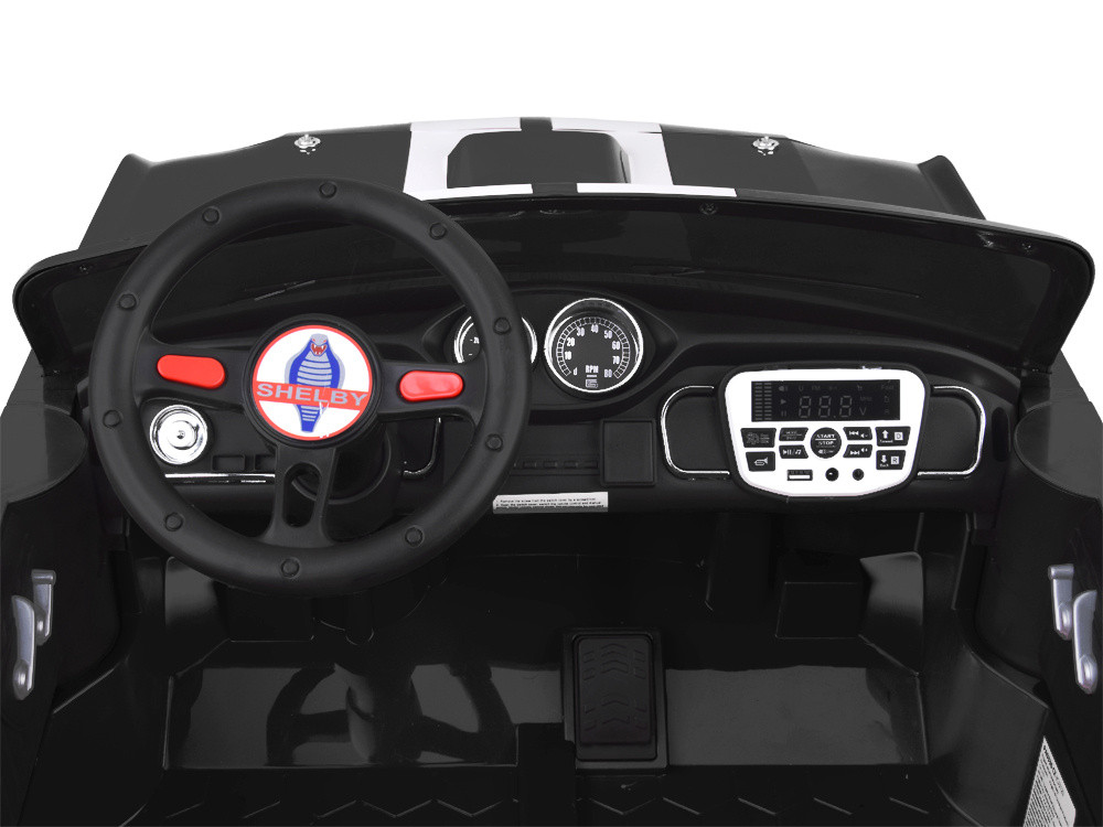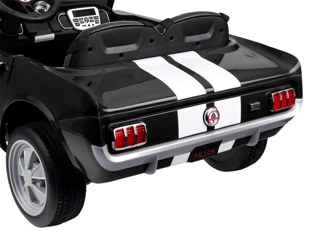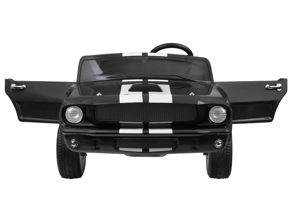 Ez a lenyűgöző elektromos kisautó, amelyet a legendás 1965-ös Ford Mustang Shelby GT inspirált, minden kis autórajongó álma! A klasszikus formavilág, a sportos részletek és a valósághű élmény tökéletesen ötvöződnek ebben a modellben két gyermek számára is kényelmesen használható, a kormány pedig vezetői pozícióban, bal oldalon helyezkedik el, mint az igazi autókban. A jármű világító első-hátsó lámpákkal, valamint világító műszerfallal rendelkezik. Ezen kívül kürt, modern dallamok, USB-SD-MP3 csatlakozási lehetőség, valamint a hangerőszabályzó is izgalmassá varázsolja a kisautót a gyerekek számára. A kisautó élethű irányváltó karral rendelkezik. A kisautó fokozatosan gyorsul fel, amíg el nem éri a végsebességet, ami megszünteti a kellemetlen rántást induláskor valamint meghosszabbítja a motorok élettartamát. Az új, 2,4Ghz rendszerű távirányítón 3 sebességfokozat választható 3 sebesség előre-1 sebesség hátra. A távirányító vissza jelzi a beállított sebességet. S gomb vészfék funkció a távirányítón vészhelyzetben az autó bármikor leállítható és irányítható, a távirányítóval. A P gomb ismételt lenyomásával visszaadjuk az irányítást a kis sofőrnek. Ez a biztonsági funkció biztosítja a szülő tökéletes uralmát a jármű felett. Menet közben a szülő felülírhatja, korrigálhatja a menetirányt előre-hátra és jobbra-balra, beállíthatja a megengedett sebességet. Az új generációs távirányítónak köszönhetően, az autó kisebb gyermekek számára is ajánlott! 2,4 GHz Szülői távirányító amely a konkrét autóhoz párosítható, ezért egyidejűleg bármennyi kisautó egymás zavarása és irányítása nélkül távirányítóval működtethető egy helyiségben. Puha habosított kerekek az EVA polimerből készített kerekek magas szín és szerkezeti stabilitással rendelkeznek. Mikroporózus szerkezetüknek köszönhetően defekttűrők. Főbb előnyei: puha, rugalmas mégis erős, szagtalan, UV álló, szívós, ellenáll mindenféle repedéseknek és töréseknek, vízálló.