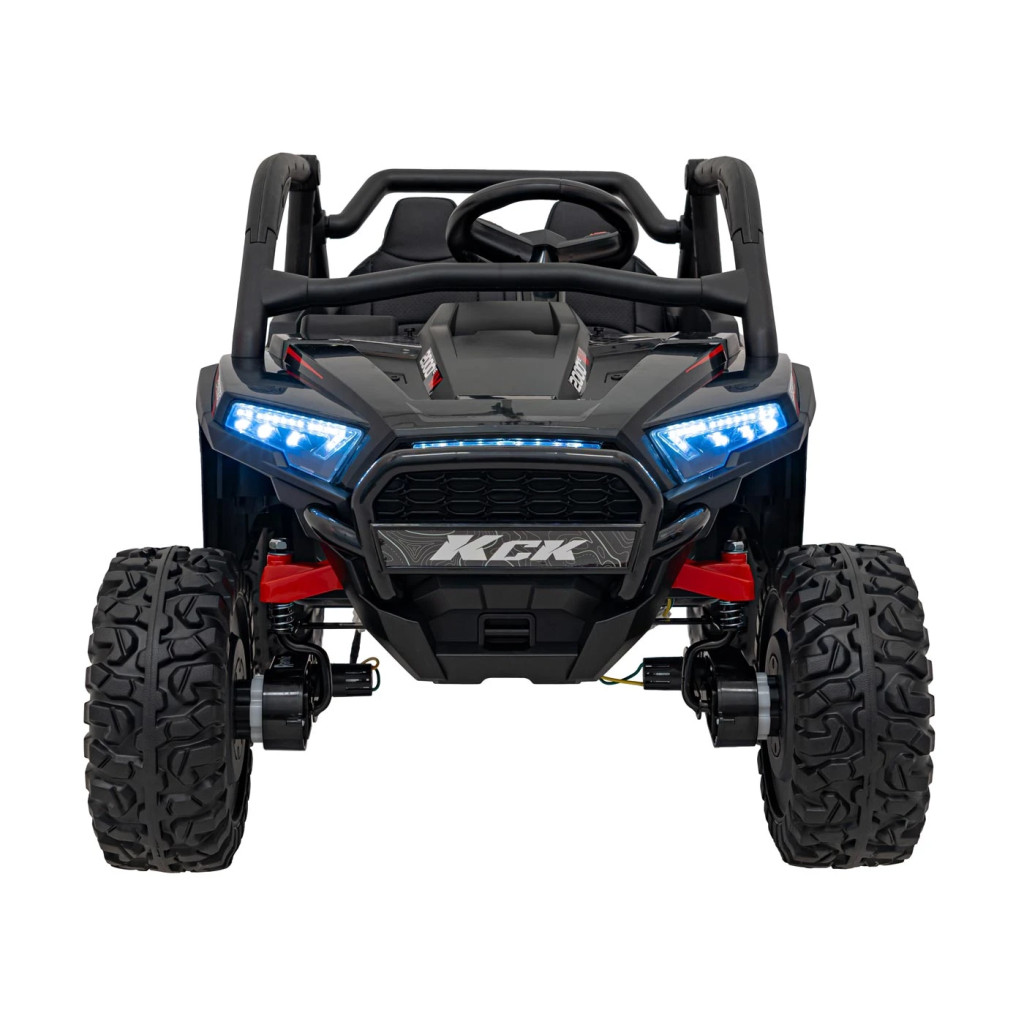24 V-os jármű, 4 darab erős kerékmotorral, amely bírja a füvet, gyepet, kisebb emelkedőket. A jármű  kapcsolható világító első és hátsó lámpákkal, valamint világító műszerfallal rendelkezik. Ezen kívül kürt, modern dallamok, MP3-USB-Bluetooth csatlakozás, hangerőszabályzó is izgalmassá varázsolja a kisautót a gyerekek számára. Indításkor felbőgő motorhang hallható, a kisautó fokozatosan gyorsul fel, amíg el nem éri a végsebességet, ami megszünteti a kellemetlen rántást induláskor valamint meghosszabbítja a motorok élettartamát. Az új, 2,4Ghz rendszerű távirányítón 3 sebességfokozat választható 3 sebesség előre-1 sebesség hátra. Az új generációs távirányítónak köszönhetően, az autó kisebb gyermekek számára is ajánlott! Puha habosított kerekek az EVA polimerből készített kerekek magas szín és szerkezeti stabilitással rendelkeznek. Mikroporózus szerkezetüknek köszönhetően defekttűrők. Főbb előnyei: puha, rugalmas mégis erős, szagtalan, UV álló, szívós, ellenáll mindenféle repedéseknek és töréseknek, vízálló. 2,4 GHz Szülői távirányító amely a konkrét autóhoz párosítható, ezért egyidejűleg bármennyi kisautó egymás zavarása nélkül távirányítóval működtethető.