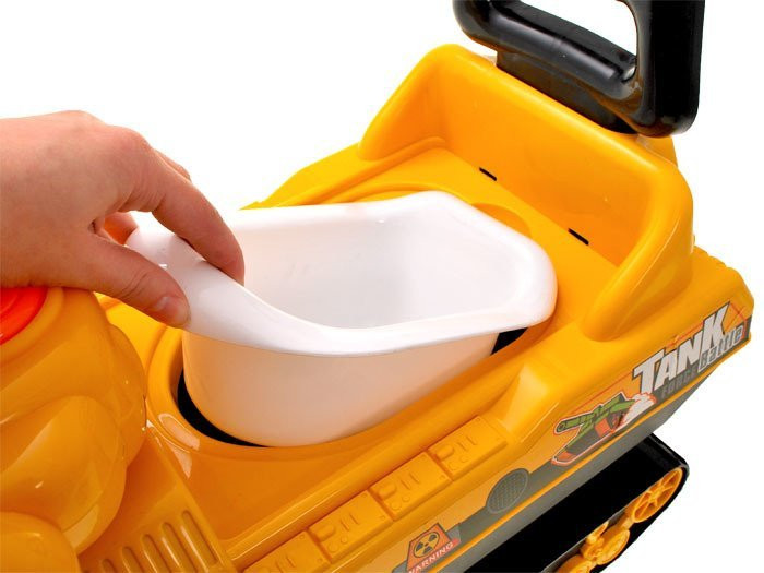 Lábbal hajtható tank kisebb gyerekek számára. Széles ülése, magas háttámlája van, és a gyermek könnyen halad előre sík felületeken. Előnye, hogy golyókat lehet kilőni a játékkal. A golyókat felülről lehet betölteni, a kar segítségével mozoghat és lőhet a tankkal. Kürtje van, hogy tájékoztassa a gyalogosokat arról, hogy a tank közelít. A széles ülés egy tartályt rejt magában, amelyet a gyermek biliként is használhat. A tartály könnyen eltávolítható, és kiüríthető, tisztítható.