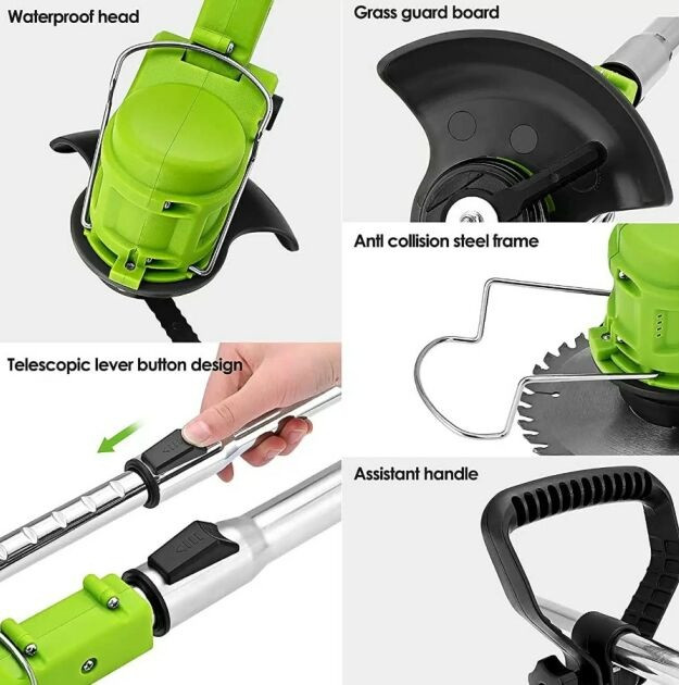 Nagy kerted van, de a fűnyírás nem a kedvenced? Esetleg szívesen gondozod az udvart, de nincs profi fűkasza géped? Ezzel a professzionális akkumulátoros fűkasza az egyik legjobb választás, ha a fű nyírásáról van szó. A nehezen elérhető helyeket is megszabadítja a gyomtól, pontosan vág és szépít. Nagy előnye, hogy vezeték nélkül működtethető az akkumulátornak köszönhetően. Az éles kés, a szélező funkció és a forgatható fej tesznek róla, hogy a kevésbé gyakorlott kertészek is magabiztosan használják a fűkaszát. Magas fordulatszámmal. Lithium 68 V akkumulátor a hosszan tartó folyamatos teljesítményért kábel elakadás nélkül. Ezzel a professzionális akkumulátoros fűkasza az egyik legjobb választás, ha a fű nyírásáról van szó. Az éles kés, a szélező funkció és a forgatható fej tesznek róla, hogy a kevésbé gyakorlott kertészek is magabiztosan használják a fűkaszát. A teleszkópos nyél 100 centiméter és 150 centiméter között állítható, így a felhasználó testmagasságához igazítható az optimális ergonómia érdekében. Kerekes kialakítás a vágófej mellett elhelyezett kerekek segítik a gép stabil vezetését és megkönnyítik a fűnyírást a sík felületeken. Változatos vágóeszközök a csomagoláson található ikonok alapján a készülék használható fém vágótárcsával, fém vágókésekkel és műanyag késekkel is a különféle kerti feladatokhoz.