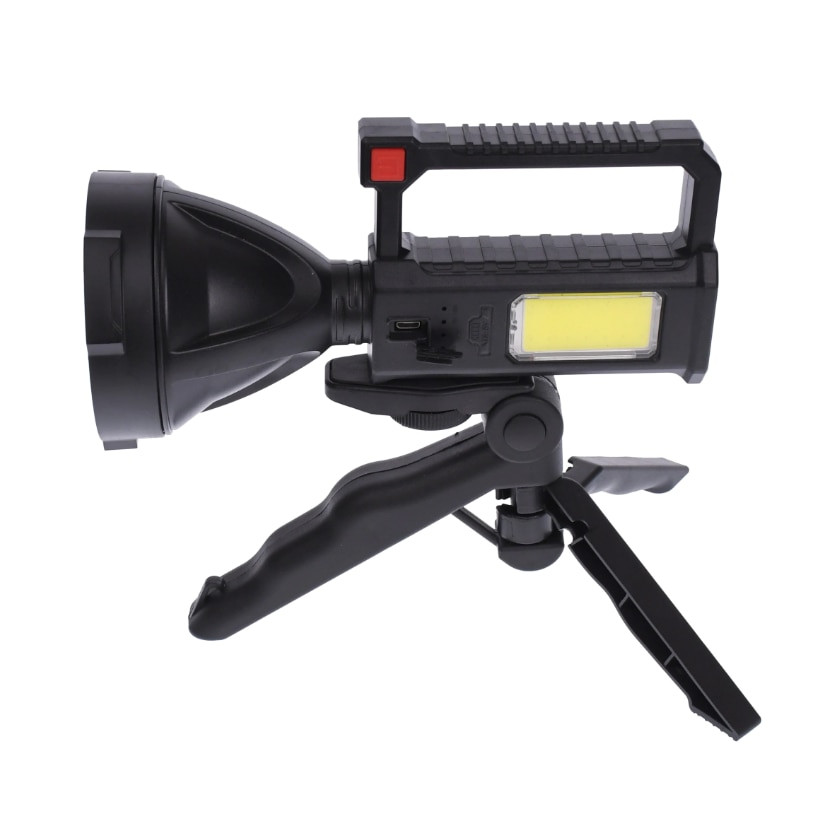 Strapabíró kialakítású, kisméretű, mégis óriási fényerővel rendelkező keresőreflektor, amely akkumulátoros működésének köszönhetően hosszantartó működést garantál. A nagy teljesítményű, extra fényerővel rendelkező, akár 200 méter szúrófényt is képes kibocsátani magából, így minden körülmények között számíthat rá. Az ergonomikus ház IPX5 védelemmel rendelkezik, így esős, párás időben is kiváló szolgálatot nyújt. A lámpa kényelmes használatát kétféle csúszásmentes, bordázott fogantyú garantálja, mely közül az egyik háromlábú tripoddá is alakítható, így bárhová elhelyezve állandó fényként világítja meg a munkaterületet. Ideális felszerelése lehet túrázóknak, vadászoknak, horgászoknak, keresőcsapatoknak, biztonságiőröknek vagy akár hatóság embereinek is.