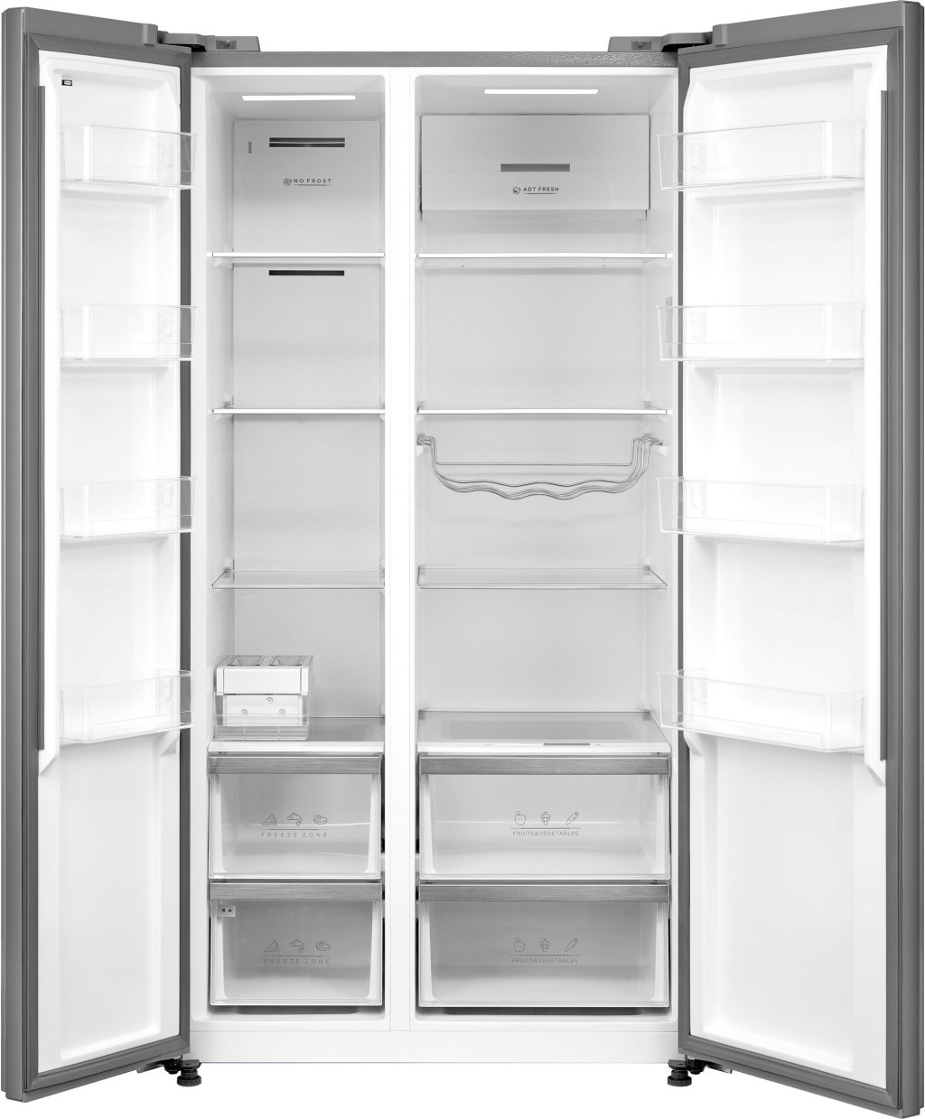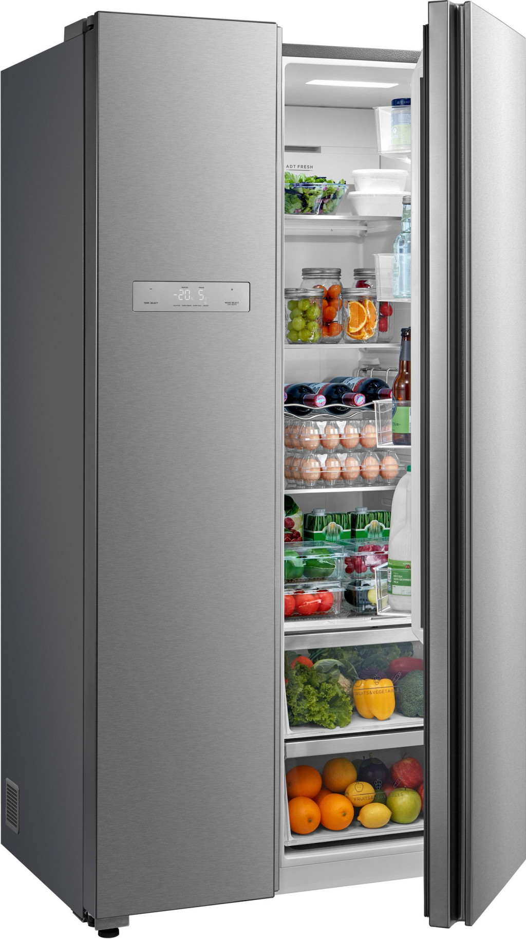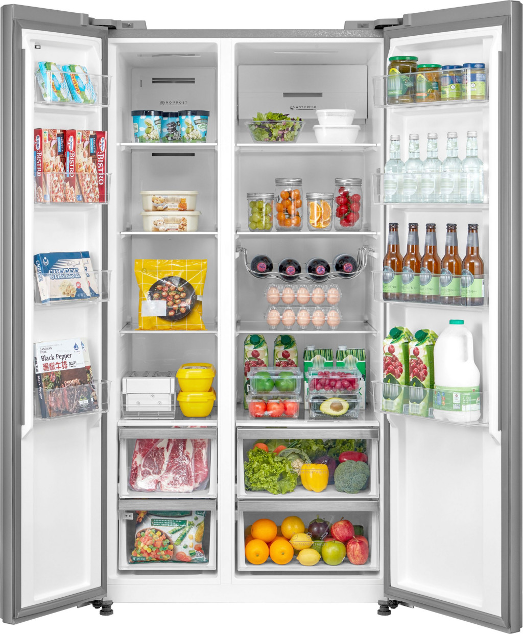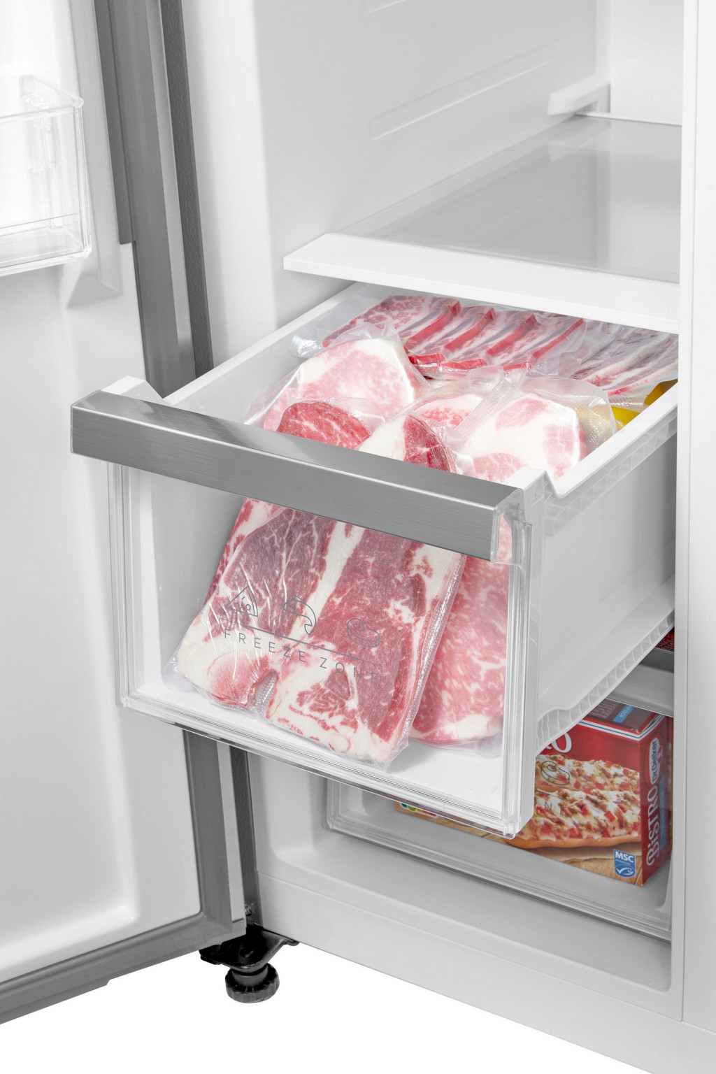 Esztétikai sérült termék! A Hanseatic Side by Side hűtő-fagyasztószekrény ötvözi a magas funkcionalitást a modern kialakítással, és ideális megoldás a Te hűtési igényeidhez. A nagyvonalú 379 literes hűtőtérfogat és a 213 literes fagyasztási térfogat lehetővé teszi a vásárlások optimális tárolását. A jól átgondolt belső elrendezés négy polcot, valamint két fagyasztófiókot és két zöldséges fiókot tartalmaz, amelyek segítenek mindent megfelelően tárolni. A négy ajtós polcnak köszönhetően további tárolóhellyel rendelkezik a kisebb tárgyak számára. A gyorsfagyasztás funkció biztosítja, hogy az élelmiszereket lehűtsék és lefagyasszák, különösen gyorsan, ami megőrzi az élelmiszer frissességét. A mindössze 35 dB-os működési zajjal a hűtőszekrény különösen csendesen működik, és nem zavarja a mindennapi életet. A LED belső világítás biztosítja, hogy mindig nyomon követhesd a tartalmat. Az elegáns rozsdamentes acél elülső rész modern hangulatot kölcsönöz a konyhai térnek, és harmonikusan illeszkedik minden konyhai dekorációba. A Hanseatic Side-by-Side hűtő-fagyasztószekrény szekrény tökéletes választás azok számára, akik értékelik a minőséget, a funkcionalitást és a vonzó kialakítást.