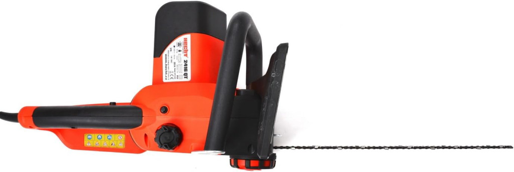 Jó minőségű elektromos láncfűrész 2400 W teljesítménnyel, 40 cm hosszú láncvezetővel. A fűrész Soft Start indítással van felszerelve, ami kiegyenlíti az áramellátást, így egyenletesen indul el a fűrész, így nem terheli le az elektromos hálózatot. A fűrészen található még gyors láncfeszítő, így a lánc feszességét szerszám nélkül is be tudja állítani. A fűrész elengedhetetlen segítség a kertben és a ház körül. Az elektromos motor nagyfokú megbízhatóságot jelent, bonyolult beállítások nélkül, és neki köszönhetően sikerült elérni, hogy a gép súlya csupán 4,7 kg. A jó minőségű és erős műanyag és fém részeknek köszönhetően a fűrész súlyelosztása kitűnő, ez csökkenti a fáradság érzését munka közben. A láncfűrész természetesen biztonsági elemekkel is fel van szerelve, úgy mint, a biztonsági láncfék, ami azonnal megállítja a láncot, a szilárd fogazott támaszték, vagy a vezeték feszülését megakadályozó fül. A láncolaj adagolása is automatikus, és az olajszintet folyamatosan ellenőrizni lehet az átlátszó olajszint mutató segítségével.