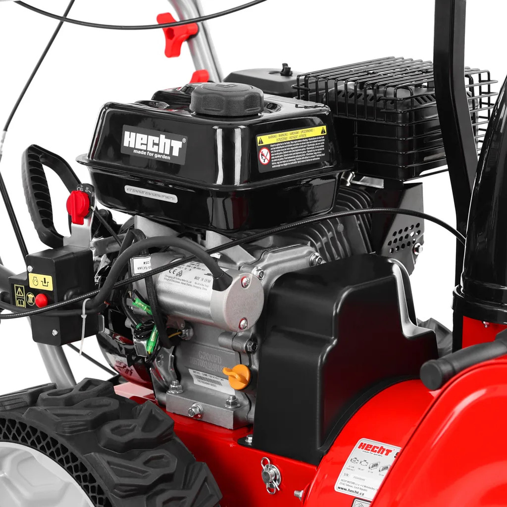 A Hecht 9661 SE kétfokozatú önjáró benzinmotoros hómaró a 9661 modellen alapul, de LED reflektorral és 230 V-os elektromos indítóval van felszerelve. Egy 4,1 kW-os, 4 ütemű HECHT OHV motor hajtja, 13 hüvelykes kerekekkel, durva futófelülettel, amely kiváló tapadást garantál még a legnehezebb körülmények között is, és kiváló terepáteresztő képességet biztosít. A LED-es reflektor lehetővé teszi a vágó használatát sötétben, kora reggel vagy késő délután is. Az indítás klasszikus módban, vonórúddal indítva, vagy a beépített elektromos indítónak köszönhetően a 230 V-os szabványos aljzatból is elvégezhető. Az első indítás, például reggel, könnyedén elvégezhető a konnektorba dugva, és amikor a motor bemelegedett, a vonórúddal is könnyen indítható. A marószerszám tartálya kiváló minőségű fémből készült, amely ellenáll a mély és jeges hóba vagy jégcsapokba való beleakadással szemben. Az altalajból egymásra rakódó burkolat stb. származó hó okozta károk elkerülése érdekében a tartály oldalsó állítható csúszótalpakkal van felszerelve. 6 előremeneti és 2 hátrameneti sebességgel állíthatod be a tisztítási sebességet a hó állagának és mennyiségének megfelelően. A hóeltakarítás irányával biztosan kényelmesen szabályozhatod a leeső kéményt 190°-os tartományban. Ezeknek a tulajdonságoknak köszönhetően a maró alkalmas nagyobb felületek tisztítására is.