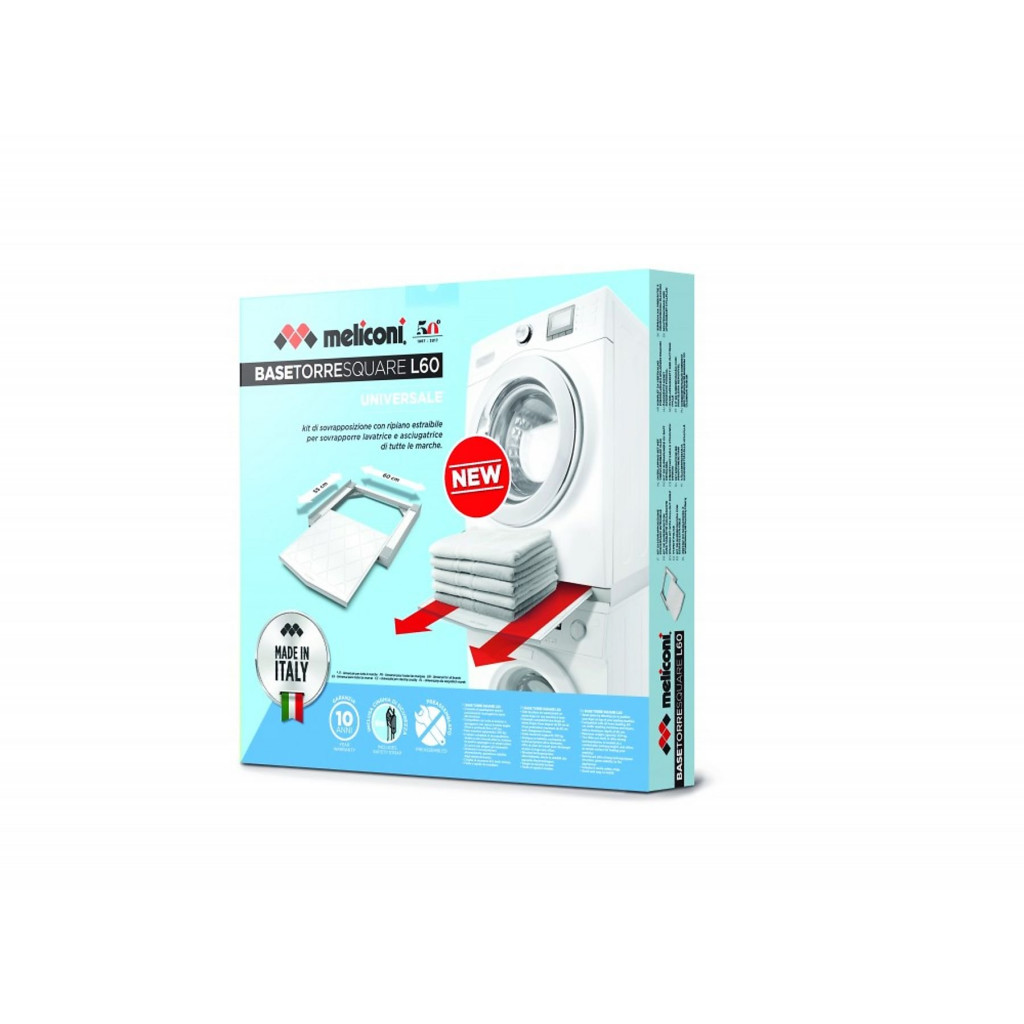 Rakd egymásra mosógépedet és szárítógépedet helytakarékosan és stílusosan! A Meliconi Base Torre Square L6 univerzális összeépítő keret stabil tartást biztosít, míg a kihúzható polc kényelmesen használható ruhahajtogatáshoz vagy kosár tárolásához. Univerzális kialakítás, kompatibilis a legtöbb elöltöltős mosó és szárítógépel. Maximális terhelhetőség: 250 kg. Lehetővé teszi, hogy helyet takaríts meg, ha a mosó és szárítógépet egymás fölé helyezed el. Erősített, rendkívül erős technopolimer szerkezet, stabilitást biztosít a készülékek számára. A kihúzható polc kényelmes munkamagasságban helyezkedik el, és bőséges felülettel rendelkezik a kimosott ruhák hajtogatásához. Polc maximális terhelhetőség: 10 kg. Az exclusív kialakításnak köszönhetően mellékelt biztonsági pánt átfűzhető a keret alján kialakított nyíláson. 6 méter hosszú biztonsági pánttal ellátva. Előszerelt és gyorsan telepíthető.