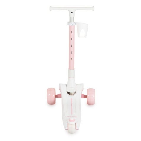 Ajánlott korosztály: 3+. Maximális teherbírás: 50 kg. 5 fokozatban állítható kormánymagasság. Összecsukható. Széles, csúszásgátló bevonatú talp. Csúszásmentes, ergonomikus markolatok. Beépített világítás: elülső és platformvilágítás színes LED-ekkel, dinamó elven elem nélkül működik! Pohár vagy palacktartó, hogy a frissítő mindig kéznél legyen. Szín: Fehér, rózsaszín.