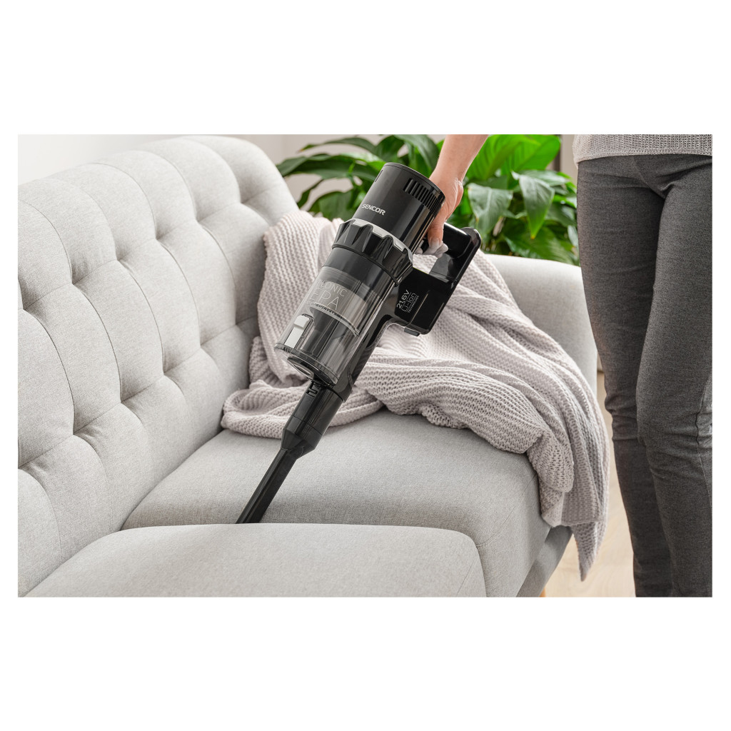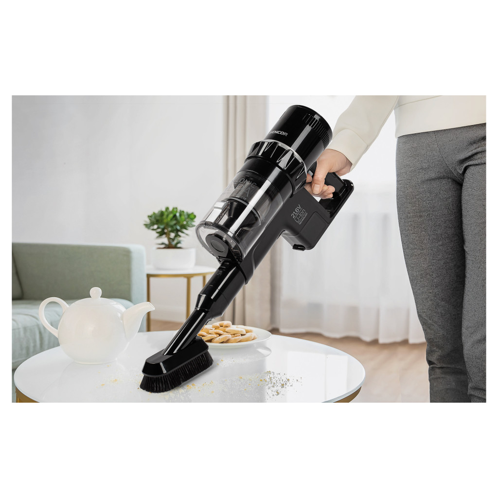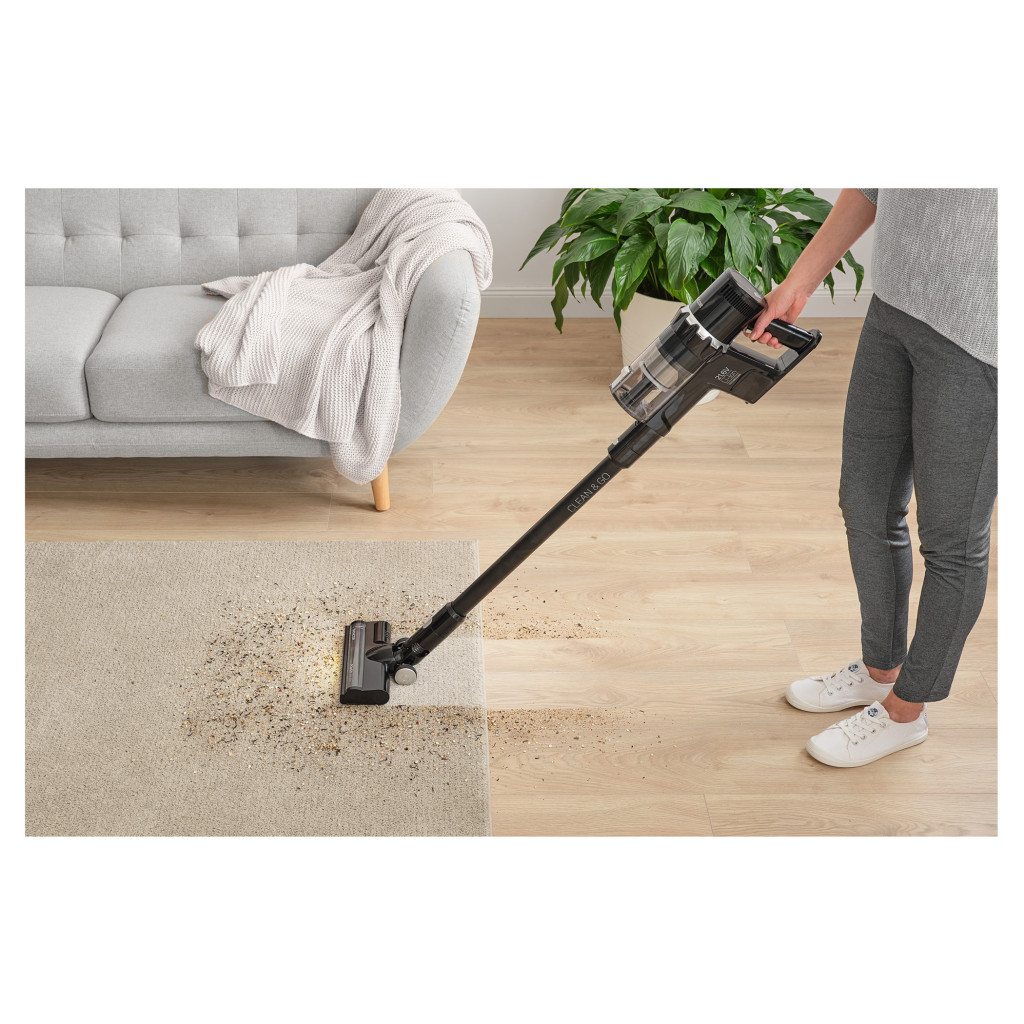 A kevesebb forgó és kopó alkatrész garantálja a hosszabb élettartamot a nagy teljesítményű, 21,6V-os Li-ion, 2200 mAh kapacitású akkumulátor akár 45 perces üzemidőt és rövid 4,5 órás töltési időt biztosít. A háromszintű ciklon Hepa szűrőrendszer tökéletesen tiszta levegőt biztosít a porszívóból távozó levegőnek. A Hepa szűrő nagyon hatékony és elfogja a legkisebb por és allergének részeket, könnyen mosható, tisztítható és visszahelyezhető. Hasonlóképpen, nem kell gondolkodnod egy cserélhető porzsák vásárlásáról! A 0,5 literes kivehető portartály bármikor egyszerűen elmosható. Ráadásul a porzsák nélküli működéssel kíméli környezetet a szintetikus anyagoktól és egyben a pénztárcád is. A kivehető kézi egység a mellékelt tartozékokkal gyorsan és hatékonyan eltávolítja a port és szennyeződéseket a bútorokról, az asztalról vagy az autóból. A Hepa ciklon szűrőrendszer a legkisebb porrészecskéket is felfogja. A takarítás jellegétől függően három teljesítményfokozat közül lehet választani. A Turbó üzemmód előnyösen használható a koncentrált vagy mélyebben található szennyeződések porszívózásához, a nagy teljesítmény pedig a normál takarításhoz. A hosszabb üzemeltetés üzemmóddal akár 45 percig is porszívózhatsz. A LED világításnak köszönhetően megvilágíthatod az apró szennyeződéseket és a finom port. A LED világítótest stratégiailag a szívófej közepén lett elhelyezve, amely így megfelelő területet tud megvilágítani. A független motorral ellátott forgókefe kiváló eredményt biztosít bármilyen típusú padlón, és javítja a szőnyegekről származó szennyeződések felszívását. A 360°-os technológia lehetővé teszi a hozzáférést minden sarokhoz a padlótól a mennyezetig.